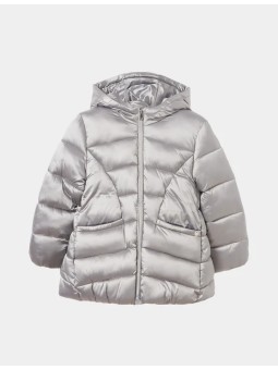 Kurtka z długim rękawem dla dziewczynki. Wypełnienie ECOFRIENDS 100% poliester z recyklingu. Model z kapturem. Zapięcie na środku na zamek błyskawiczny. Satynowe wykończenie.