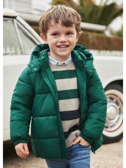 Kurtka z długim rękawem dla chłopca. Model z kapturem. Zapięcie na środku na zamek błyskawiczny.