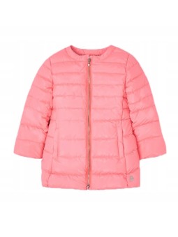 Kurtka przeciwwiatrowa z długim rękawem dla dziewczyny. Okrągły dekolt z detalami w kontrastowym kolorze. Zapięcie na środku na zamek błyskawiczny. Lekka, oddychająca i bardzo wygodna tkanina techniczna. Z przodu funkcjonalne kieszenie. Model gładki.