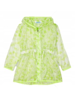 Kurtka przeciwdeszczowa z długim rękawem dla dziewczynki od 2 do 9 lat ze ściągaczami. Kołnierz z kapturem. Zapięcie na środku na zamek błyskawiczny. Z przodu funkcjonalne kieszenie.