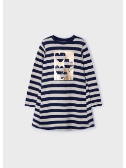 Sukienka z długim rękawem dla dziewczynki. Ozdoby: grafika na przodzie. Motyw w paski. Grafika na przodzie.