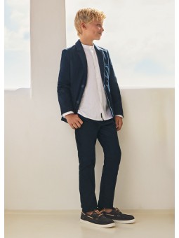 Długie spodnie dla chłopca typ chinos 8 do 16 lat o dopasowanym kroju. Zapięcie na zamek i guzik. Regulowana gumka w pasie dla lepszego dopasowania. Delikatna i elastyczna bawełna.