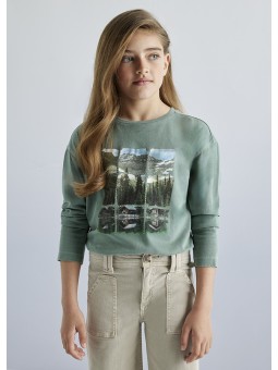 Koszulka z długim rękawem dla dziewczynki. Okrągły dekolt. Artykuł wykonany ze 100% bawełny. Grafika na przodzie