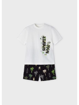 Krótkie spodnie typu bermudy dla chłopca . Elastyczny pas ze sznurkiem do regulacji. Wygodna dzianina. Funkcjonalne kieszenie z przodu.