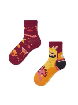 Rodzina skarpetkowych potworów rośnie! Yellow Monsters, kuzyni bestsellerowych The Monsters, właśnie przybyli z odległej galaktyki pełnej kosmicznej fantazji. Na naszej planecie mówią, że strach ma wielkie stopy, ale tutaj – to raczej strach się nie śmiać.