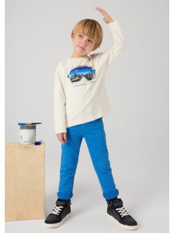 Długie spodnie dla chłopca 2 do 9 lat o dopasowanym kroju (Slim fit). Zapięcie na suwak z przodu, jak też na zatrzaski. Regulowana gumka w pasie dla lepszego dopasowania. Delikatna i elastyczna bawełna. Ze względu na wymogi bezpieczeństwa, mniejsze rozmiary (2-5 lat) posiadają imitację rozporka, bez zamka.
