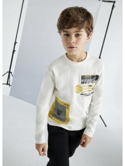 Koszulka z długim rękawem dla chłopca. Okrągły dekolt. Ubranko wykonane ze 100% bawełny. Ozdoby: aplikacja na przodzie ubranka.