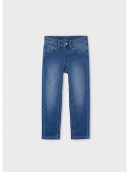 Długie spodnie dla chłopca 2 do 9 lat o dopasowanym kroju (Slim fit). Zapięcie na suwak z przodu, jak też na zatrzaski. Regulowana gumka w pasie dla lepszego dopasowania. Delikatna i elastyczna bawełna. Ze względu na wymogi bezpieczeństwa, mniejsze rozmiary (2-5 lat) posiadają imitację rozporka, bez zamka.