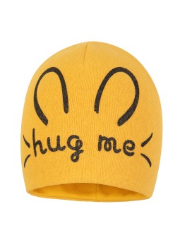 *Czapka dla dziewczynki w kolorze miodowym. Model GINA charakteryzuje się ozdobnym nadrukiem z przodu. Wykonany jest z przędzy regenerowanej, 70% bawełna, 20% poliacryl, 3% wiskoza, 2% poliester, 2% poliamid, 2% elastan. Podszewka 95% bawełna, 5% elastan.