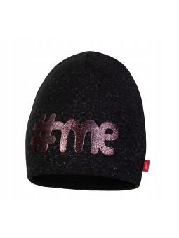 Czapka dla dziewczynki. Model HELA w kolorze czarnym z domieszką różowego. Wykonany jest z 52% poliacrylu, 44% bawełny, 2% poliestru, 2% elastanu. Podszewka 95% bawełna, 4% elastan.
