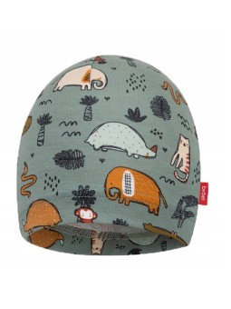 Czapeczka w kolorze zielonym, rozweseli każde dziecko motywem zwierzęcego safari. Model ALIBABA wykonany z bawełny organicznej to doskonały wybór dla komfortu małej główki. Skład: 95% bawełna organiczna/5% elastan.