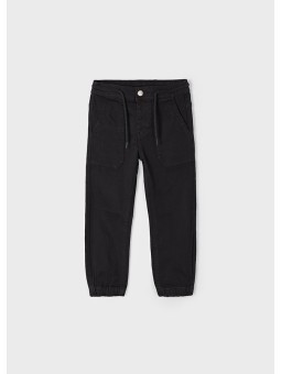 Długie spodnie typu jogger dla chłopca 2 do 9 lat, luźniejsze w górnej części dół zakończony śćiągaczem. Idealne do sportowych stylizacji, które odzwierciedlają modę uliczną. Elastyczny pas ze sznurkiem do regulacji. Wygodna i trwała tkanina z serży.